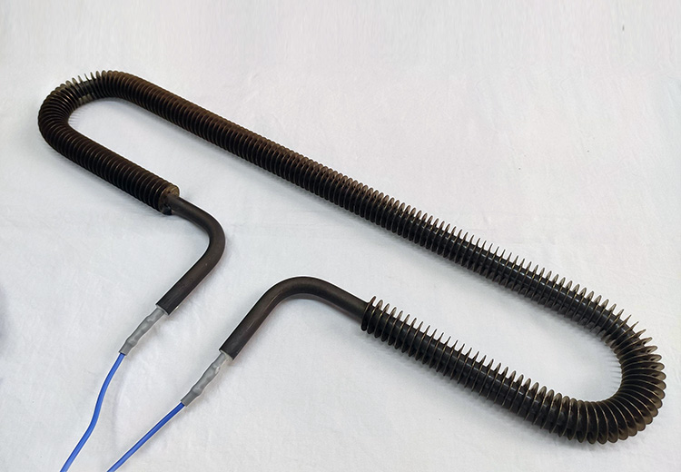 Purpose: A sheathed heater with fins for lower heater surface temperature ,for better corrosion resistance,and for less insulation failure.